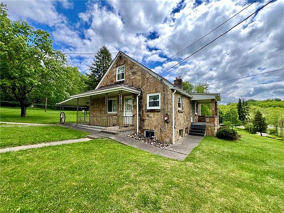 This quaint 3 bedroom, 2.5 bath cape cod style home with a beautiful stone exterior rests upon a lush 1 acre lot with a 2 car detached garage. The main floor includes a kitchen, dining room, living room, master bedroom and full bath. On the second floor, you will discover another 2 bedrooms with access to so much storage, as well as a powder room. The basement includes a workshop area, as well as multiple storage areas, laundry area and another full bath. A large storage shed is also included at the rear of the property. Take in the quiet country views from the front and rear covered porches. New roof on house and garage in 2025, new furnace 2023. Appliances included!