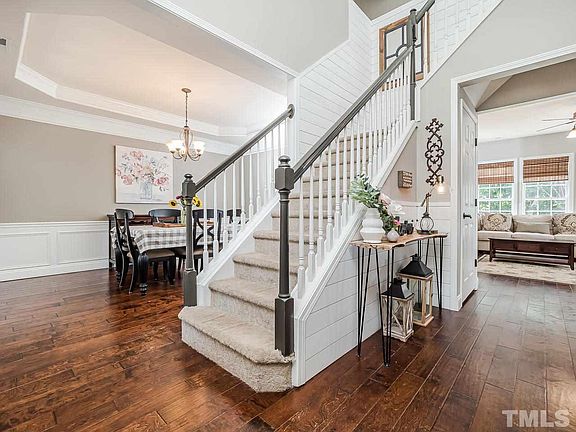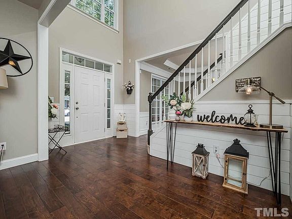 This backyard oasis is waiting for you! Stone paver patio, fire pit, pergola...you'll never want to leave home! But when you do, you're within walking distance to school, parks, pool, tennis & min from RTP, airport, I-40, I-540, shopping & more! 2-story foyer invites you into this gorgeous open floor plan flooded with natural light. 1st floor boasts hand scraped hardwood floors, large kitchen with island, granite, SS appliances & wooded views. Unwind in the HUGE Master Suite w sitting area. Welcome Home!