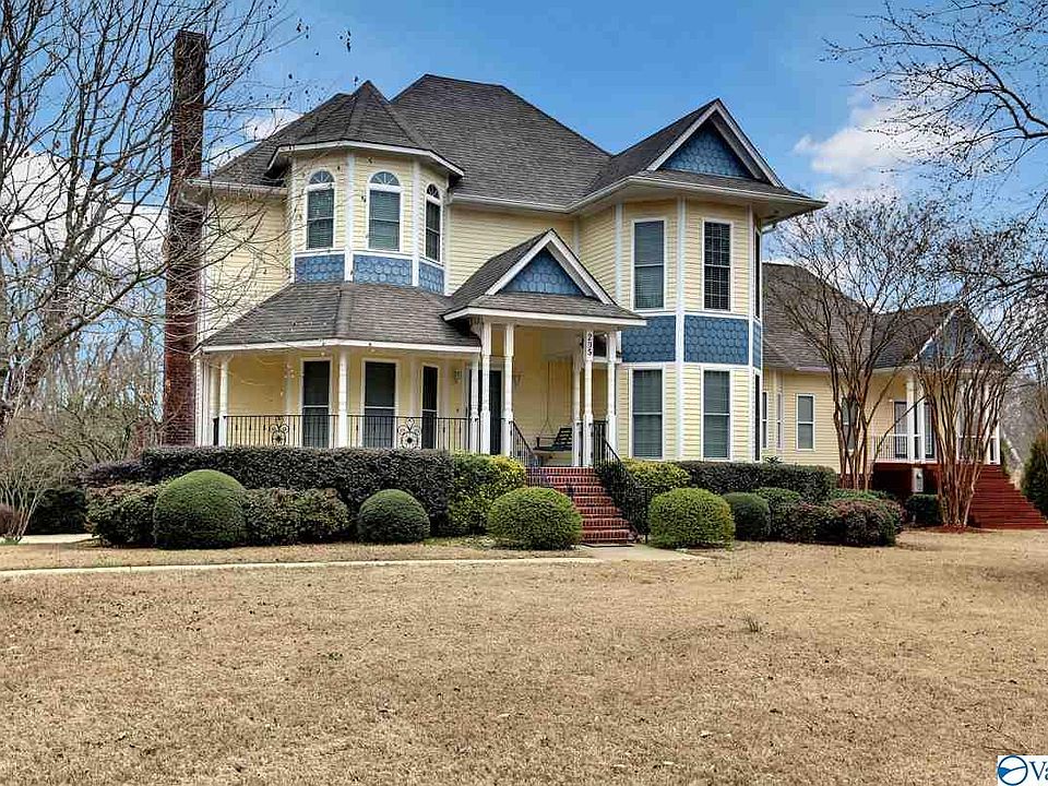Bring your horses, no restrictions! One of a kind Victorian home w/ Flint River access and guest quarters! Extensive trim throughout this well built home! Family room features beautiful hardwood flooring, gas log fireplace, & access to your expansive deck overlooking the amazing private lot w/ river views! Elegant formal dining room w/ trey ceiling! Kitchen is well equipped w/ granite counter-tops, walk-in pantry,& stainless steel appliances. Spacious master suite w/ trey ceiling, sitting area, hardwoods, & veranda! Full walk-out basement w/ theater room, also serves as STORM SHELTER! 3 car detached garage, garden shed, covered porches & fish pond! Very well maintained!
