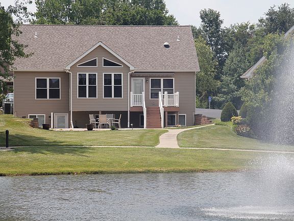 Beautiful cared for villa located on gorgeous stocked lake in a gated 55 & older active community. Own your home & lot (not a condo). Open floor plan with vaulted ceiling in main living area and many energy efficient extras. Mostly finished walk up daylight basement with workshop area. Lawns are mowed for you. Community Center with activities, saltwater swimming pool, lighted walking paths, caring & helpful neighbors, and many more desirable amenities.