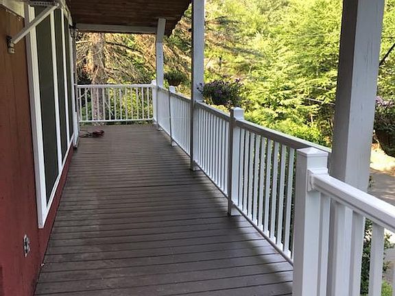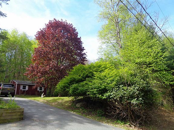 CHARMING COUNTRY CHALET ON A DOUBLE LOT. Sit on your private covered front porch and take in the views. Property landscaped with colorful flowers in Spring, Summer, and Fall, along with Rhodadendrons, Rose of Sharon, and Cherry trees. Totally renovated kitchen, open floor plan with cathedral ceilings, lots of windows to let in natural light, 3 bedrooms, 2 baths, oil baseboard heat, basement and an oversized detached one car garage off of a paved driveway. Dont miss this one!