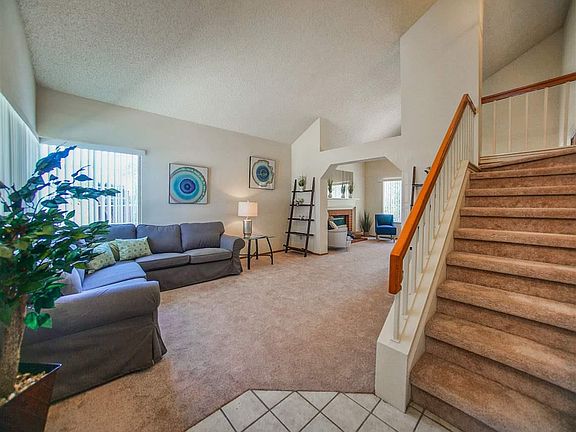 This beautiful home is nestled in a quiet corner location in a court! Before entering into this home, you are greeted with a shaded relaxing front porch. When entering this home you are welcomed with a formal living room featuring vaulted ceilings. Upgrades throughout this home include fresh paint on the exterior/interior, window coverings, new carpet and new faucets in the kitchen & bathrooms. This kitchen offers views of the landscaped backyard, breakfast & matching appliances. Open kitchen/family room combo that offers a gas starting wood burning fireplace. Upstairs offers a spacious master bedroom & bathroom, hallway storage, and two additional bedrooms. Tranquil backyard offering a trellis covered patio, low maintenance landscaping and gate access for parking your RV/boat. This home gives you such a cool & private feeling with all the large shade trees surrounding the property. Additional features in this home include a paved walkway Spacious garage with storage.