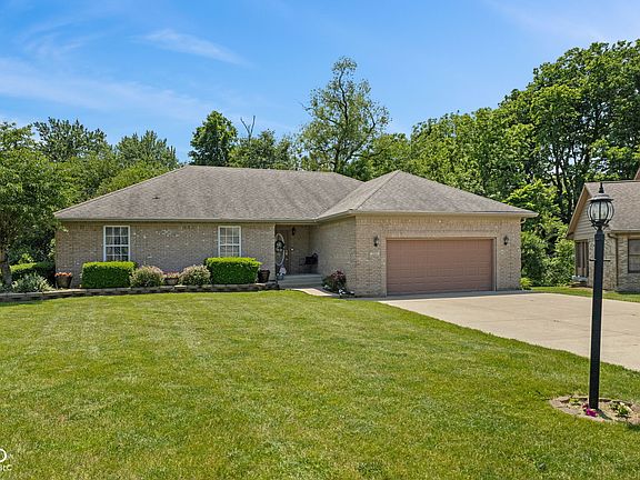 Welcome to this stunning 4-bedroom, 3 full bath brick ranch nestled in the sought-after Trinity Estates neighborhood. This spacious home offers an open-concept layout designed for both comfort and entertaining, starting with a dramatic great room featuring cathedral ceilings and a cozy fireplace. A dedicated dining room and well-appointed kitchen complete the main living space, perfect for family gatherings and everyday living. The main level includes a private primary bedroom with a full ensuite, along with two additional bedrooms and another full bath. Downstairs, the finished basement is a true showstopper-featuring a large rec/theater room, a built-in full bar, a fourth bedroom, and a third full bathroom, offering flexible space for guests, hobbies, or entertaining. Step outside from the great room onto a deck complete with lattice for added privacy and a relaxing hot tub-your own backyard retreat. The nicely sized wooded yard features a cozy firepit area and a mini barn for extra storage. This home truly has it all: space, style, and a great location. Don't miss your chance to make it yours!