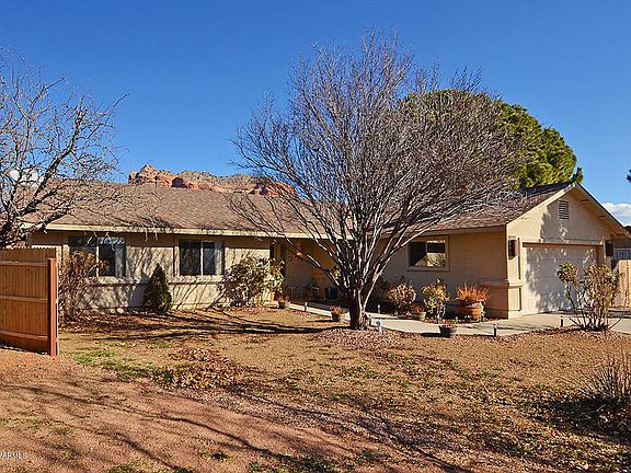 RED ROCK views from this 2001 Ranch style home that boasts the Open floor plan with split bedrooms, laundry room and an attached 2 car garage on a large lot situated wtih privacy and views. Two car attached garage. Laundry room between garage and kitchen. Simple, clean in the Village of Oak Creek walking distance to stores, golf course and more.