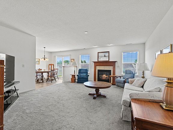 Bright and cheery comes to mind when you walk into this villa in the heart of Saddlebrook Villas! Hard to find 3 bedroom Villa offering an open Living Room w/fireplace, separate Dining Area and Kitchen with everything you need including the appliances. The Primary Bedroom suite includes a gorgeous updated Bathroom including double sink vanity and walk in shower! Plus a large walk in closet. Two additional roomy bedrooms - and another full Bath. Separate Laundry Room - washer and dryer included! Luxury Vinyl Plank Flooring has been added to the Kitchen, Bathrooms, Foyer and Laundry. Outdoors you will enjoy the large Rear Yard which is surrounded by a vinyl fence. This villa is well maintained, clean and ready for you to move in! Location couldn't be more convenient - just a short drive to most shopping and conveniences you will need - plus easy access to the Pufferbelly Trail just minutes away! Monthly maintenance fees include mowing and snow removal - you can relax and enjoy life!