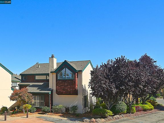 Discover this stunning, detached two-story townhome in the highly sought-after Baywood community. Enjoy serene surroundings with picturesque lagoons, meandering walking paths, & access to a sparkling community pool & hot tub—perfect for soaking up the California sunshine. Inside, abundant natural light fills the spacious living room, which features soaring ceilings, beautiful hardwood floors, plantation shutters, & a cozy fireplace. The updated kitchen boasts sleek quartz countertops, stainless steel appliances, a convenient breakfast bar, & opens to a charming patio for dining al fresco. There’s also a formal dining room & breakfast nook for additional dining options. It uniquely has two master-sized bedrooms with en-suite bathrooms with dual vanities & large walk-in closets, providing ample storage space. The primary bedroom includes its own private patio accessible through a sliding glass door, creating a peaceful retreat. Parking is a breeze with an attached two-car garage & ample guest parking right in front of the home. Freshly painted throughout & with new flooring upstairs & entry, this home is move-in ready—simply unpack and enjoy! Conveniently located within walking distance of Harbor Bay Landing for shopping, dining, & coffee. Commuter's dream close to the SF ferry!