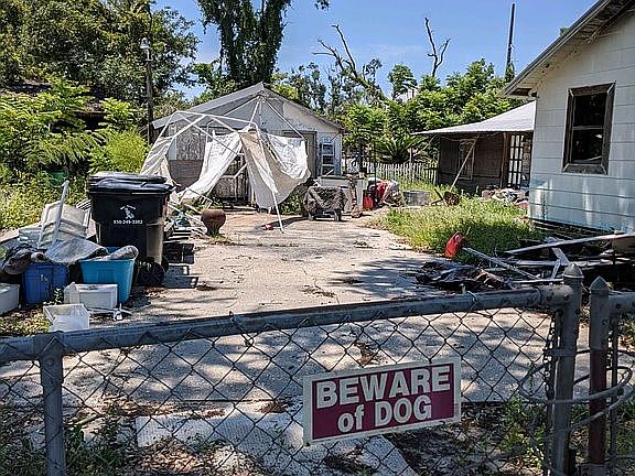 This 100' x 140' (.32 acre) fenced yard consists of 3 out-buildings & a house. There is a two-car carport, huge 16' x 36' workshop, and 10' x 14' gazebo. The 3 buildings all show bad weathering, but the structures are sound, and could be refurbished with some TLC. The house had a fire in one of the rooms. Your options for the house are: demolish entire structure and replace it with a site built home or with a mobile home; demolish only the fire damaged portion and upgrade the remaining structure to current building code requirements; rebuild fire damaged portion and upgrade entire structure to current building code requirements. Utilities for main house as well as water/electric hookups for mobile home on south side of driveway. Convenient to Callaway & Panama City. 2.5 mi from Walmart.