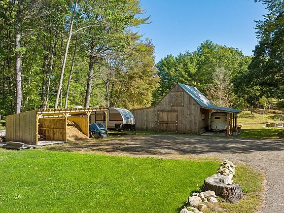 New quartz countertops ground the kitchen and warm the heart to blend this cozy, functional atmosphere . A grand foyer will impress ''front door guests'' with an overlooking balcony. The living room crackles with the ambiance of an open fireplace to ward off chilly fall nights. A custom built desk sits near the sparkling sunroom and overlooks the yard through expansive windows. The primary bedroom on the first floor has a separate living area, private deck as well as direct access to a separate basement entrance. Upstairs holds 3 bedrooms which were freshly painted and new wood flooring. The basement includes a wood stove for backup / subsidiary heat . On the backside of the home you will be drawn to the wrap around deck and covered porch with a working, bubbling hot tub. Outside you will find a small barn for extra storage or farm animals, a wood shed and an ample yard that is well landscaped and ready for entertaining. This home is full of character and charisma will not disappoint! This is not just a house but a place to call home.
