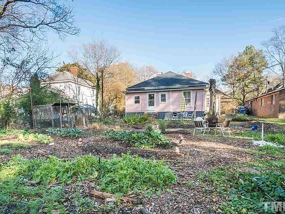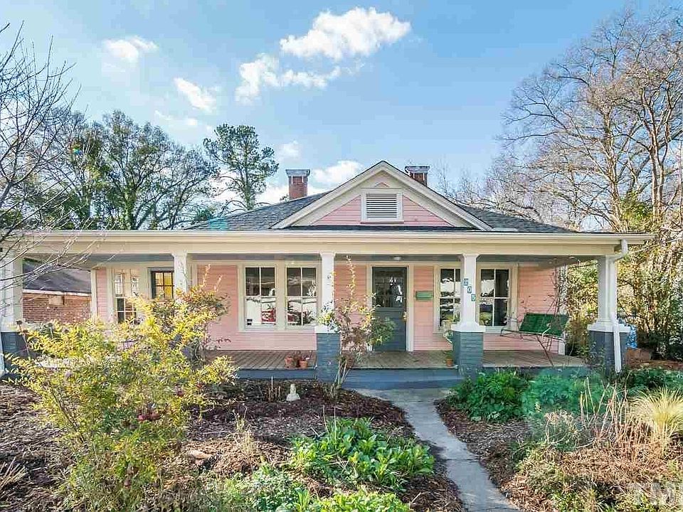 - Lovingly maintained c1925 Pyramidal cottage, Hugh Luquire House (knitter) with two interior chimneys, a front gable, 2-over-2 vertical sash windows, German siding, and a wraparound porch with Craftsman posts, side bay of porch enclosed as a sunroom - Carpentry, beadboard ceilings, large front porch, sunroom, original hardwood floors & windows make for a bright, high quality, unique home located less than a mile from downtown Durham - Professionally landscaped, large quarter acre lot contains abundant &beautiful pollinator gardens, mature fruit trees/berry bushes, & fertile 2500 sq ft veg. garden ready if you like for spring planting - New dishwasher and convection range plus family size frig - Porch swing and reglazed clawfoot tub complete a vintage yet updated offering - Fresh interior and exterior paint - New roof and HVAC new in 2014 - Layout and rooms offer many options for use - Short southerly walk to Angier/Main Streets where you find Rofhiwa Book Cafe, Ideal's Sandwich and Grocery, Sofia's Pizza, and Russell's Pharmacy - Walk or bike Northwest to Highwire, J Lights Market & Cafe, Two Roosters Ice Cream, Ponysaurus, and Honeygirl Meadery & Tasting Room - Authentic Durham, local and cool!
