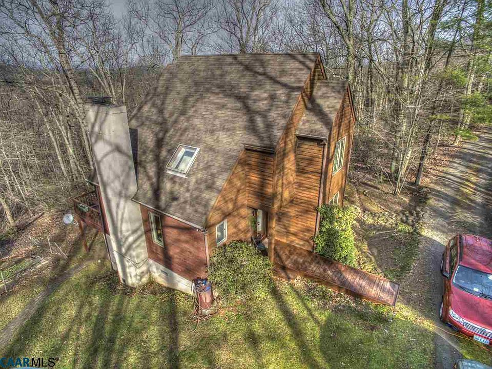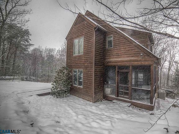First time for sale, a tucked away chalet-like 3 bedroom, 3 bath home in Sherwood Farms on 10+ acres. Very close to town but it seems like you are in the Blue Ridge w/ privacy & wonderful winter views. Well maintained (see list of improvements) and LEAP certified. Screened in porch, finished basement w/ fireplace and kitchenette perfect for guests, artist studio or in-law suite. A large deck off the back overlooking 10+ wooded low maintenance acres, garden area and panoramic view of Charlottesville. LEAP energy updates performed by Abrahamse & Co. A small first floor bedroom currently serves as an office. The large dining room w/ porch on one side & deck on the other. Each and every room takes advantage of the out-of-doors views! Come See!
