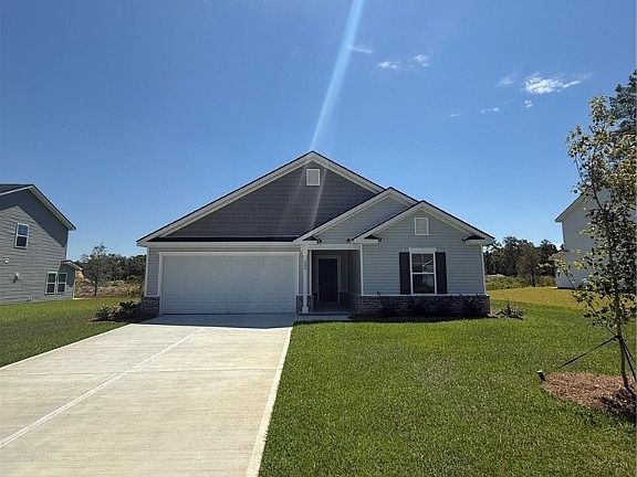 HOME IS MOVE IN READY!! Savannah's most trusted local builder is proud to offer our Spring Valley II TR plan. This home has some excellent features and upgrades including our upgraded front look "Elevation E" with brick ledge, covered back porch with 15' W x 10' D concrete patio extension, separate garden tub and shower in primary bathroom, garage door opener with 2 remotes, pendant lights above kitchen island, large single kitchen sink, click plank wood look flooring in main living area and wet areas, upgraded level 3 cabinets throughout, granite tops in Kitchen, quartz tops in both bathrooms, ADT security package, Fully Sodded and Irrigated yard with auto timer, and tray ceiling with fan and light kit in primary bedroom. All builder incentives applied.