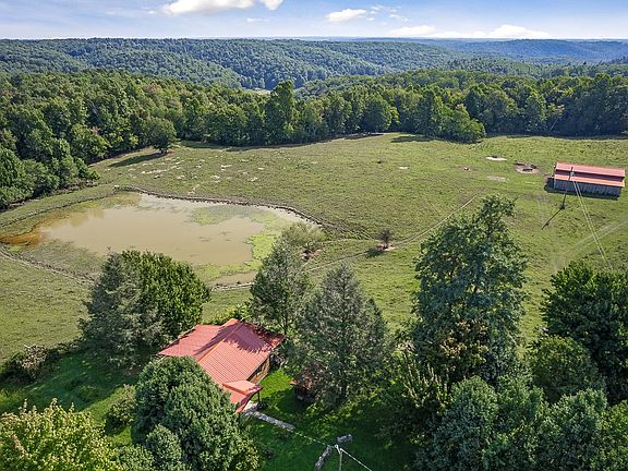 Come live where the hilltops touch the sky in beautiful Crawford TN! Seclusion and privacy can be yours! Nestled at the end of a country road is the perfect hideaway cabin and an additional farmhouse awaiting its restoration! Enjoy the 4 seasons from your covered back deck overlooking the spring-fed pond stocked with catfish and bass. Nestled on 27 surveyed acres of unrestricted land this property is fully fenced with a 50 x 40 barn, and a working cattle farm. The property also includes caves, forestry, and a rumored oil well. This 2-bedroom cabin offers vaulted ceilings with tongue and grove ceiling, multi-purpose wood/gas stove, and a full kitchen. This property could be an amazing multi-generational homestead or income producing farm!