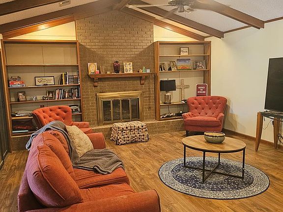 Open Floor Plan features 3br 2Ba & office space. Large den offers woodburning fireplace, flanked by built in bookcases. Spacious bedrooms & great closet space.Updated guest bathroom. Cover patio & wired shop.