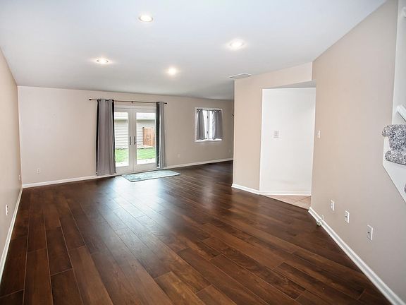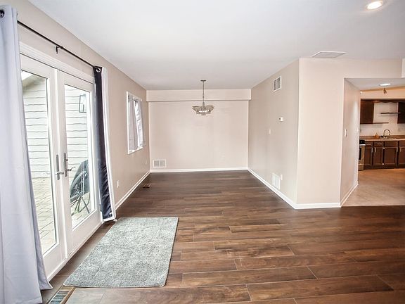 This two story 3 bedroom, 1 1/2 bath townhome is MOVE IN READY! New flooring throughout! Freshly painted! Tile entry greets you and opens to the Living Room with recessed lighting and beautiful new flooring which continues through the Dining Room. French doors lead out to the patio and fenced yard area. The eat in Kitchen has newly tiled floors, plenty of cabinets including a Pantry, and stainless appliances! Main level Laundry is conveniently located off the kitchen and offers new Samsung washer and dryer. Upstairs are three generous sized bedrooms. The main bedroom has a large walk-in closet and access to the updated full bath with double bowl vanity. The fenced area outside leads to an large 2 car garage with plenty of storage. You will love the location...close to shopping, dining, as well as a quick drive to I65 or Rt. 41.