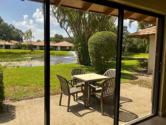 The Club Cottages community is one of the most sought after and conveniently located communities in PGA National. With an oversized lot creating a sanctuary like setting, this corner unit is brightly lit with numerous windows and floor to ceiling sliding doors. Enjoy views of the lake, community pool and fountain from your open living/dining area. Tastefully furnished with neutral colors and tile flooring throughout. Kitchen has been updated with new appliances. Both bedrooms are a comfortable size with ample closet space. The bathrooms have new tub/shower areas styled with designer tiles. New AC unit with service contract. Make this your new home or own as a great investment property. PGA memberships available.