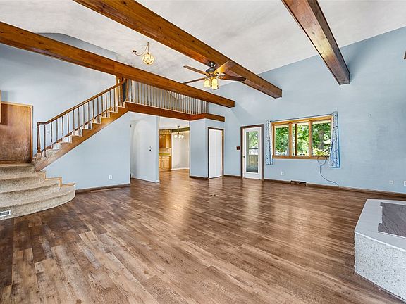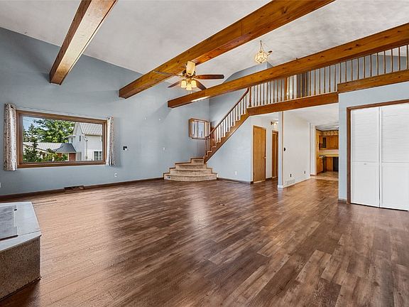Large beautiful corner lot and a spacious home full of charm and character! Prepare to be wowed by the large great room with luxury vinyl flooring, exposed wood beams and gas fireplace surrounded by built-in shelving. Plenty of space and cabinetry in the kitchen just off the dining area and great room. The main level also includes one bedroom and a full bath. Just beyond the open loft area upstairs you will find the huge primary ensuite with double vanities and step-in shower. The lower level offers additional finished space with two non-conforming bedrooms, a third full bath, tons of storage and breezeway for easy access to the oversized attached garage. Enjoy the summer nights on the back deck or large covered porch. Great location, mature trees and in-ground fencing - makes this home yours today!