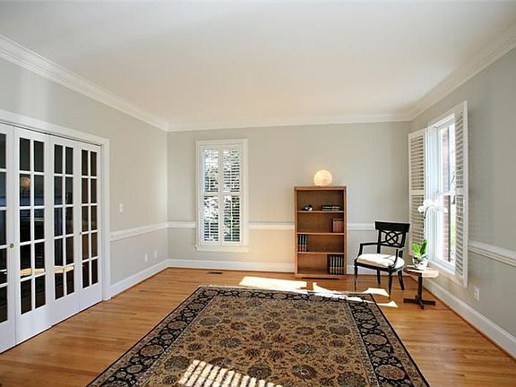 Elegant home on level lot with perfect location at end of cul-de-sac, short walk to LHF club w/pool, tennis courts & trails. All rooms are unusually spacious! Living room open to the family room with custom built cabinets for TV, tech equip. & art. Back stairs to large bonus room w/wall of bookshelves. Small loft area on 2nd fl. 900sf walk-up unfin. attic. Offered for sale by Jennifer Williams (919) 619-6300