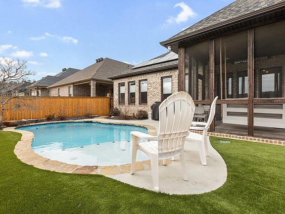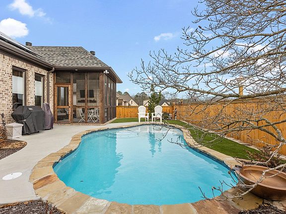 This luxurious home is a true gem that you won't want to miss! Step inside through a custom made steel door with an operable window, perfect for enjoying those refreshing spring mornings. The main living area and master bedroom feature high-end luxury vinyl flooring. The open floor plan boasts a chef's kitchen with upgraded appliances, a spacious island, farmhouse sink, supersized pantry, floor-to-ceiling cabinetry, and more. The living room offers coffered ceilings, a marble-wrapped fireplace, and full-size windows for ample natural light. The master bedroom includes a luxurious bathroom and a large walk-in closet connected to a convenient laundry room. Outside, you can relax in the heated screened porch with custom tile flooring, overlooking the pool area. Get ready for summer with the prepped gunnite pool, tanning ledge, and low-maintenance Ion System. Surrounded by lush landscaping including astro turf, Junipers, Magnolia Ann's, and Butterfly bushes, this backyard oasis truly feels like paradise. Don't miss the opportunity to see this exceptional home!