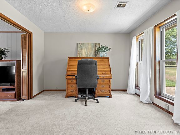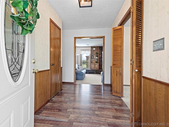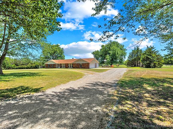 Incredible view from the back porch of the pond & beyond! Nearly 5 acres with a fully stocked pond, 15.5' x 11' fishing gazebo & windmill. Beautifully updated home with new interior and exterior paint in 2023, new laminate wood flooring in 2022, granite countertops, vinyl windows in 2019 with lifetime warranty, remodeled bathrooms in 2022 and more! Kitchen is light and bright with breakfast bar, newer microwave, stainless sink & pantry. Great room with cozy fireplace with gas starter & built in bookshelves. Second living area with bath could make a wonderful mother in law suite or 4th bedroom. Office or formal dining area too! Primary bedroom with two closets & full bath. Circle drive plus 3 car side entry garage and 11' x 24' workshop with loft. Roof is only 7 years old. New back patio with covered pergola. Minutes away from Bartlesville and Pawhuska in beautiful Osage County. Bartlesville Schools.