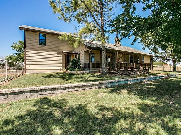 Great location with easy access to all highways and metroplex! Hard to find a nice home on 10 acres this close to metro! Spacious kitchen with loads of cabinets opens up to the living area which has vaulted ceilings and WBFP. Updated baths! Shop Barn combo has 4 stalls, tack room, ofc w bath! Arena w roping chute and return alley, all fenced and x fenced. Enjoy the quiet on the back porch and deck! Lots of room to ride and roam here! Ag Exempt!