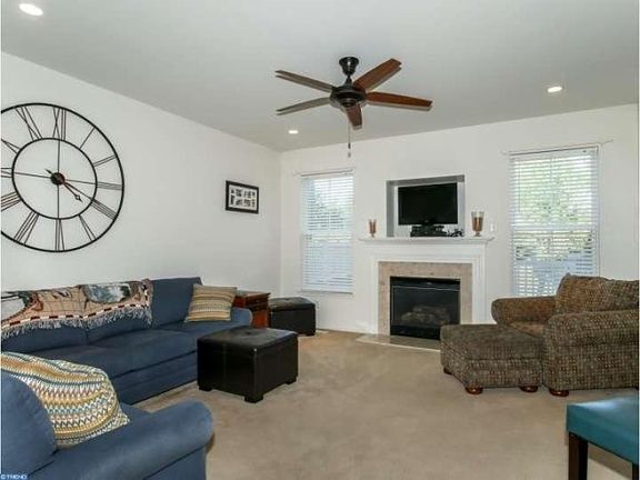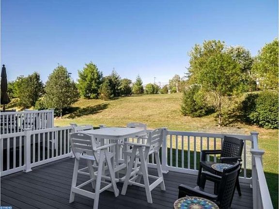 A lovely neighborhood of town homes in Chalfont and within the Blue Ribbon Central Bucks School District is offering 205 Coventry Road. This lovely three-bedroom greets you with a covered sitting porch landscaped with evergreen shrubs. Inside the living room opens to a soft hue of color contrasted by the crisp crown molding and flows into the dining area for ease of daily living and versatility. The spacious family room enjoys the warming element of a fireplace, has a built-in to in-set your tv and a soft illumination of natural light. A breakfast bar and plenty of space to create a casual dining area the kitchen boasts direct access to the deck via sliding glass doors. Highlights include a plethora of cabinetry, glass top stove, built-in microwave and an airy ambiance. Passing the powder room we head upstairs. The master bedroom is a serene space for the owners to retreat and features a walk-in closet, lighted ceiling fan, and a private bath with dual vanity and a glass shower enclosure with seat. Two additional bedrooms are both bright, cheerful and have double closets. A convenient laundry room and the second full hall bath complete this level. On the lower level there is a vast open space with recessed lighting ready for entertaining. There is also lots of storage and a separate area tucked around the corner that is ideal for creating a recreation or playroom. The brand new expanded deck steps down to the grassy open area and enjoys a natural view. This home is super clean, has been well-maintained and simply awaits your arrival.