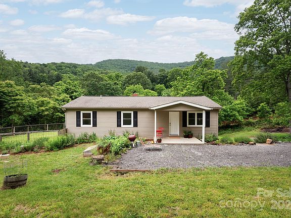 Welcome to your private retreat surrounded by nature, just minutes from West Asheville and Downtown Asheville! This delightful 3-bedroom home offers main-level living and sits on a full acre in a serene, quiet setting surrounded by mountains—perfect for gardening, relaxation, or your dream hobby farm. Enjoy low utility bills with solar panels already in place. The spacious, partially fenced yard offers endless possibilities. Inside, you’ll find a well-maintained, cozy, and inviting living space full of natural light and beautiful hardwood floors, all located on the main level. A full, unfinished basement provides storage or room for future expansion. Whether looking for a peaceful homestead or a base close to the vibrant city, this property offers the best of both worlds: tranquil country living just a short drive to Asheville’s shops, restaurants, and cultural attractions. STRs ok. No city taxes! You're just a short distance from the proposed 340-acre Spivey Mountaintop Park.
