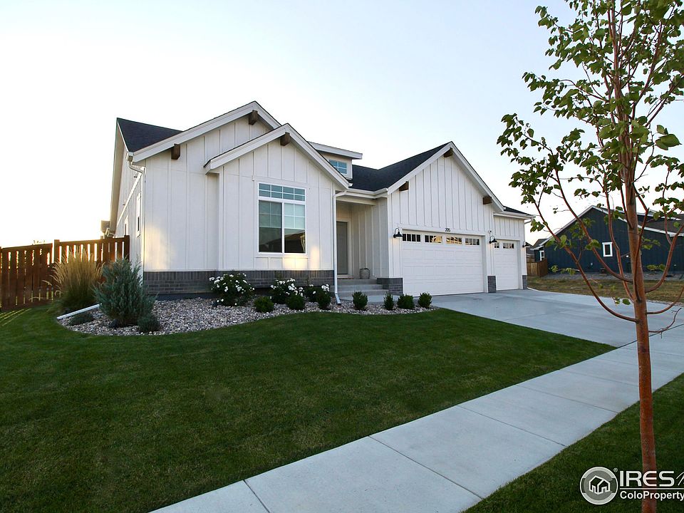 Stunning, 4 Bed / 3.5 Bath meticulously maintained semi custom ranch in quaint Berthoud. This home features a bright, open floor plan with upgraded white oak engineered hardwood floors complimented by upgraded premium carpet throughout. The kitchen will not disappoint, featuring stainless steal appliances, an apron farmhouse sink, quartz hard surface counter tops, and a walk in pantry. The vaulted ceilings in the living area, master bedroom, and front bedroom create a nice airy openness. The basement is fully finished with 9 ft ceilings, dry bar, full bathroom, large bedroom, and great room with plenty of storage. The huge covered back patio is perfect for entertaining. Sitting on a premium corner lot with a fully fenced, backyard, Longs peak views, and includes a 3 car garage, plus extra rear pass through garage opening to the backyard on a large cement slab for the hobbiest, mechanic or for back yard activities. NO METRO TAX, brand new community clubhouse and pool under construction, 15 min to Carter lake, 5 min to town, 5 min to TPC, 5 min to I25.