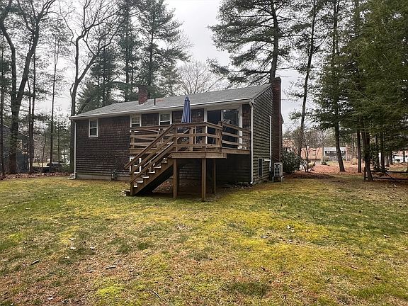 Newly listed lovely split entry in Ramblewood a desirable area of Raynham, an open floor plan with all new stainless-steel appliances, hardwood floors, and a c/t bath on first floor, a finished lower lever with a fireplace and wood stove insert, an office, and an unfinished laundry area with rough plumbing for 2nd bath that leads to a 1C under garage. The main heat source is FHW/Gas plus 3 mini splits for air conditioning/with heat combos. There is a shed for your storage needs out in the large private back yard, out front the stone wall and pavers lead to entrance, front yard has irrigation, driveway was expanded in 2022. This house has great bones and a lot of potential, don't miss this opportunity to own this lovely home, and... did I mention TOWN SEWER!!! ALL offers due by Tuesday at 1 PM