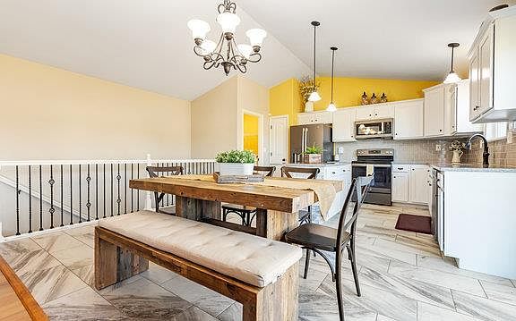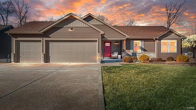 IMMACULATE CONDITION 3 bedroom, 2 bath ranch home on .27 acres in Truesdale. Home has newer upgraded finishes with main floor laundry located off of kitchen. Kitchen has newer custom tile back splash, custom tile floor, quartz countertops, crown molding with satin stainless steel appliances. Living room is vaulted with triple windows looking out on to your 16x12 wood deck. Master bedroom features coffered ceiling and beautiful view of back yard. Master bathroom has newer custom tile floor with double vanity and large walk in shower. 2 additional rooms on main level with hall bath that has newer custom tile floor to match through out the home. Lower level has a walk out on to large 16x12 patio. Lower level also has egress windows with bathroom rough, just waiting for you to finish. Gutter guards on home and buried downspouts to creek. Oversized 3 car garage. Backs to trees and homeowner planted additional young river birch trees.