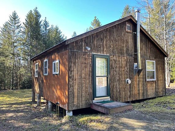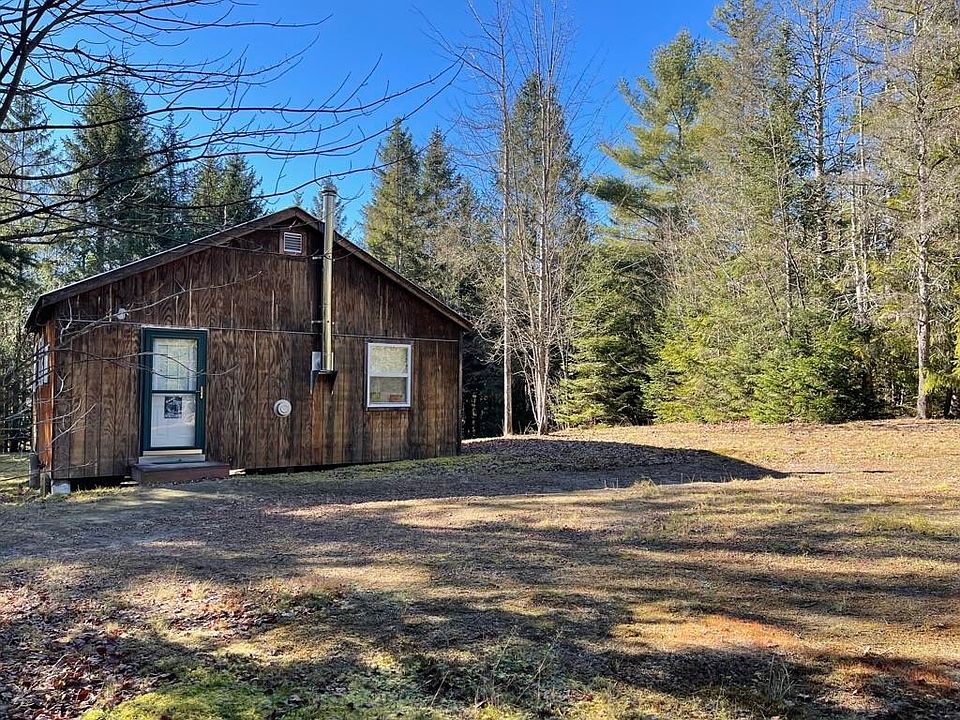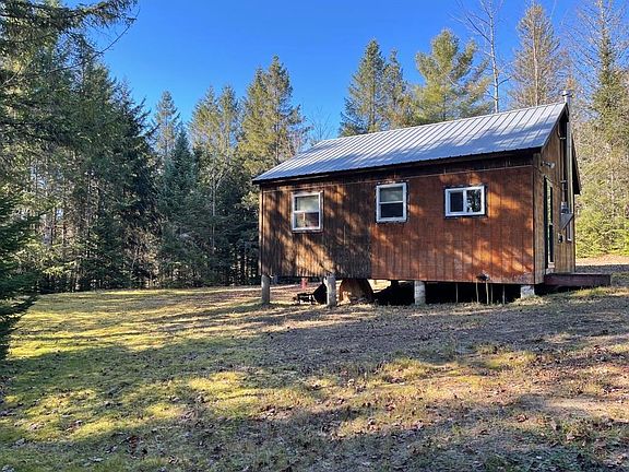 Not too big, not too small, this tiny home in the woods is just right for anyone looking for a quiet getaway in Vermont’s Northeast Kingdom. Built in 2008, this 2-bedroom off-grid cottage offers 576 square feet of living space with details, like the wood floors and double-pane windows, that put it in a class above the typical hunting camp. Hickory cabinets, a 4-burner gas stove, and propane refrigerator create a cozy kitchen along one wall in the common space. Across the room is plenty of room for seating around the glass-front wood stove. Water is provided by a drilled well, and there is a wastewater permit in place. When you want to explore beyond your 7.4 acres of land, fishing, hunting, and hiking in the 932-acre Bald Hill Wildlife Management Area is 4.3 miles away. Additional fishing, as well as swimming, boating and paddling options include Center Pond (2 miles), Newark Pond (5.5 miles), and Bald Hill Pond (7 miles). For mountain bikers, Kingdom Trails Moose Haven Trailhead is a 6.2-mile drive (or ride), and Burke Mountain is about a 20-minute drive. Stock up on supplies or have a meal out in nearby Lyndonville to the south or the village of Island Pond to the north. After a day in the woods or on the trails, stop by Dirt Church Brewing Company for some delicious Vermont craft beer. This cottage comes with all furnishings, a propane grill, and cast-iron fire pit. Come take a look at this little gem! Property is gated. No drive-bys.