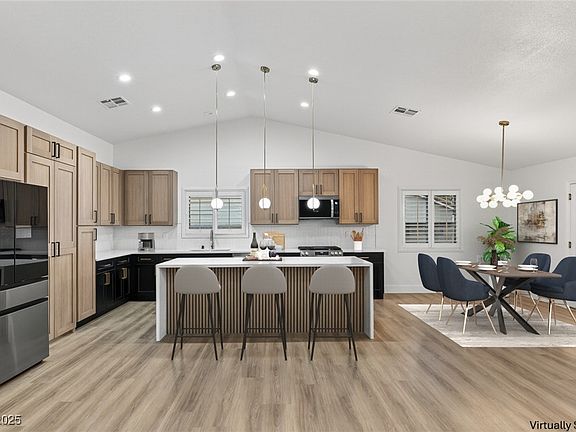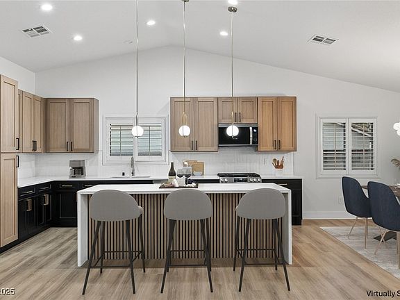 This renovated home has it all in the heart of Summerlin! Just minutes from Downtown Summerlin, Red Rock Resort, and top-rated schools. Step inside to discover brand new luxury vinyl plank flooring, 5-inch baseboards, new LED fireplace wall, and designer finishes throughout! The stunning kitchen features all-new shaker cabinets, quartz countertops with waterfall edge, and even a oversized secret walk-in pantry. Bathrooms have been completely updated with custom tiled showers and modern fixtures. Enjoy peace of mind with brand new low-maintenance landscaping and relax in your private backyard oasis featuring a pebble-tec saltwater pool—perfect for entertaining or soaking up the Vegas sunshine. Wall cabinets and shelves in garage for extra storage and epoxy! With every surface refreshed and thoughtfully designed, this move-in ready home combines comfort, style, and convenience in one of Summerlin’s most desirable locations. Stop by today!