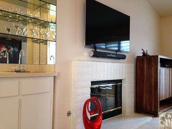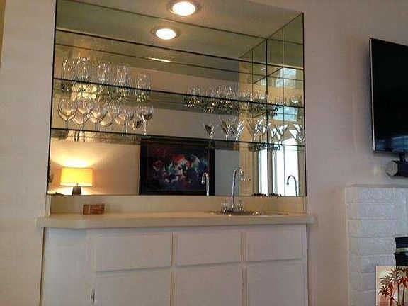 Single story, elevated, corner lot. Open green belt. Two bedrooms, on separate side of home. Two full baths. Two car garage. Private back patio. Patio has built in BBQ. Single french door off of Master bedroom leads to patio. Sliding doors off of living room leads into west patio. Plantation shutters through out home. Shag neutral carpet in bedrooms and living room. 18 inch tile through out home. Full size washer and dryer. Gas fireplace in living room. Mirror wet bar in living. Open floor plan. Plenty of light. Cathedral ceiling in dining room. 50 inch TV with sound bar, and blue ray, in living room. Each bedroom has 39 inch TV.