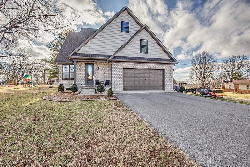 This 3 year old 4 bedroom/ 3.5 bathroom brick home provides 2,900 square feet of interior living space and an expansive back deck with incredible views of the sunset all on a roomy 0.56 acre lot in the Whispering Hills subdivision of historic Franklin Kentucky. Walking into the home through the glass pane front door, you’re welcomed by the open space of the Great Room that features a remote controlled natural gas fireplace. The kitchen, utility room, and all bathrooms have granite countertops and matching soft close cabinets and drawers. The thermopane windows throughout the home are showcased with custom plantation shutters that allow as much (or as little) sunlight in as you'd like. The kitchen has a generous walk-in pantry, hidden storage in the island, along with Rev-a-Shelf storage, organization and refuse containment systems. The downstairs primary bedroom and bathroom feature large his & hers walk-in closets, an oversized shower with dual shower heads, and a deep soaking tub. Upstairs, you’ll find a second primary bedroom with attached bath, along with two more bedrooms and one more bathroom. One of the bedrooms is so large, it’s being used as a movie/ game room! Upstairs you’ll also find a large multipurpose room that could be used as a gym, playroom for the kiddos, an office, storage, etc. The oversized 20 x 24 attached garage easily accommodates 2 vehicles and houses the natural gas tankless water heater. Call today to schedule your personal showing of this centrally located gem; 25 minutes to Bowling Green, 45 minutes to Nashville, 50 minutes to Barren River Lake
