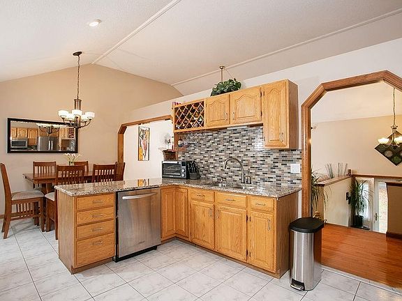- Kit Dscrp: Countertops - Stone/Granite/Solid, Deck - Exterior, Ceiling - Cathedral, Flooring - Stone/Ceramic Tile, Breakfast Bar / Nook