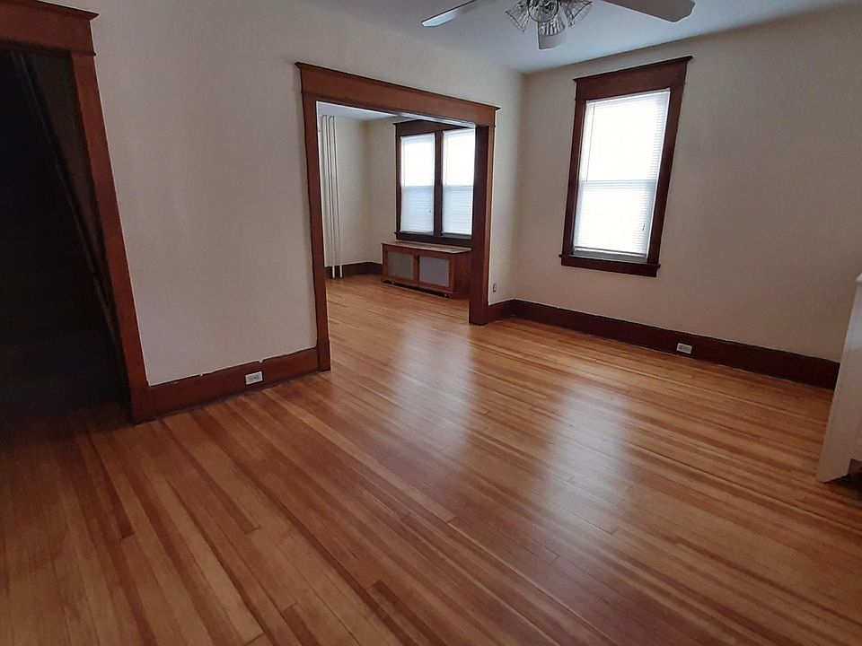 Beautiful hardwood floors throughout. Full basement, full attic spaces and half of the garage. Also includes off street parking. There is a small private front porch and a large rear porch as well. Owner pays for water. Tenant pays for heat, hot water (natural has) and electric. No smoking.