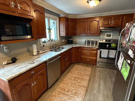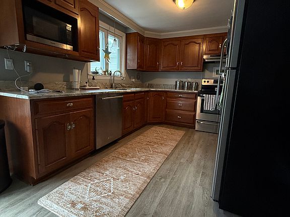 This charming 3-bedroom, 1-bath single-family ranch offers comfort, style, and convenience in a prime location close to major highways. Step inside to find a bright, open layout with cherry cabinets, granite countertops, and stainless appliances including a dishwasher making the kitchen both functional and beautiful.Enjoy cozy evenings with the pellet stove, or stay cool all summer long with central AC. A slider leads to a spacious deck overlooking the fenced-in backyard, perfect for relaxing, entertaining, or enjoying the outdoor fireplace.The full basement offers plenty of storage and even a bonus room, giving you extra space to work, play, or unwind.This special home will be available November 1, 2025 but it won't last long! Strong credit and income required. Tenants are responsible for all utilities, lawn maintenance and snow removal. Listing agent currently lives in home. Washer, dryer and microwave are tenant owned and can be purchased to remain in the home if interested. No pets, no smoking. Application fee $49 per applicant, all over the age of 18 need to apply. Tenant at will lease terms.