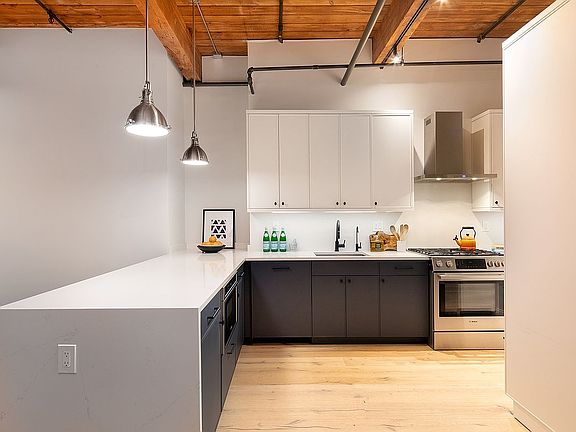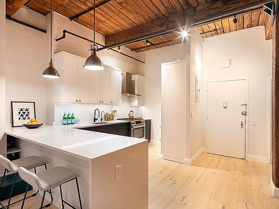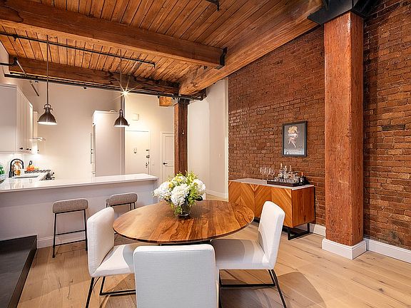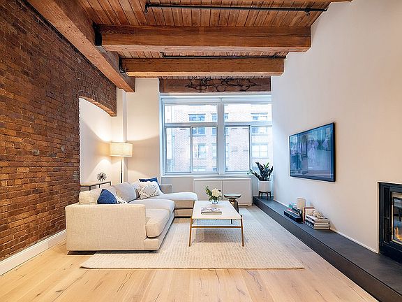Sunkissed Gramercy loft in Gramercy Habitat, a former 1920’s pre-war brewery, converted to loft condominium residences. This luxuriously renovated two-bedroom corner apartment offers elevated living while retaining the original character of the post and beam construction with exposed pine wood beams and columns and exposed brick. Entering the foyer, you are immediately struck by the incredible sense of scale provided by the open loft space with soaring 11’2” ceilings. Sunlight streams in through oversized south facing windows, into a living room with grand proportions. Feel the city melt away as you enjoy the working woodburning fireplace on a chilly evening. Ideal for entertaining, there is plenty of room for both living and dining. The newly renovated and expanded open kitchen features custom cabinetry, Liebherr refrigerator/freezer, and breakfast bar. The king-sized primary bedroom offers corner windows and a sizable closet with California closets. The spacious second bedroom easily accommodates a queen size bed or a large office with plenty of additional storage in the double wide closet. The bathroom has recently undergone a full renovation with a spa quality glass enclosed shower. New hardwood floors throughout with central heating/cooling units in each room. Gramercy Park Habitat is a unique pre-war brewery, converted into condominium loft residences. Building amenities include a full-time doorman, remodeled lobby and hallways, laundry on every floor, common storage and bike rooms, and an on-site self-park garage. Cable TV and internet are both included in the common charges. Ideally located in Gramercy on one of the most picturesque tree-lined blocks, a short walk to Madison Square Park and neighboring Union Square/Flatiron. Nearby subway access on 22nd Street to the 6, R and W trains.