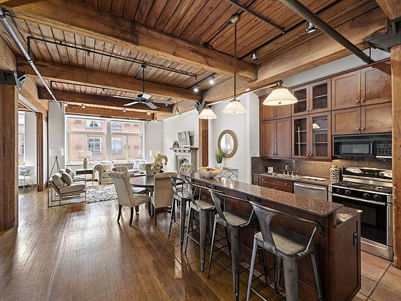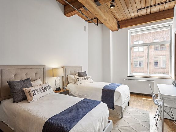 A once converted 1920's Brewery, this boutique Gramercy Park condominium exudes an impeccably crafted floor-plan, flawless flow and functional design, while melding all of the loft's interior original elements exuding a dramatic, modern elegance. This grandly proportioned 1,800+/- SF of living space enjoys soaring 11'5" wood beamed ceilings, original pinewood columns and oversized south facing windows. This architectural gem offers loft living at its finest. It boasts a dramatic living room with a wood burning fireplace that flows seamlessly into the dining room for effortless hosting. Adjacent to the dining and living room is the eat in open chef's kitchen which features custom cabinetry, granite countertops, stainless steel appliances, and a large island with counter seating. A wood burning fireplace adorns the sizable master suite with generous his and her closets, a spacious bathroom with double vanity, two person Jacuzzi tub, and glass enclosed shower. The third bedroom has been modified to create extra living space as a den/guest room separated by custom floor to ceiling sliding glass panels. Gramercy Park Habitat is a full service unique pre-war condominium in the heart of Gramercy. The building offers a 24-hour doorman, laundry on every floor, newly renovated common hallways, a common storage room, parking garage, and newly renovated bike room.