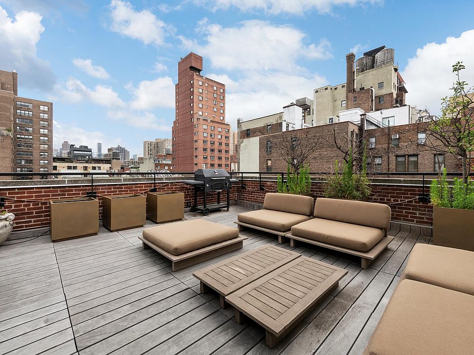 Truly sophisticated loft-like 2 bedroom/ 2.5 bath duplex penthouse. This unique, newly renovated residence offers 2,455 square feet of interior living space and a 350 square foot private outdoor terrace with sweeping views to the North, West, and East.The first level offers an open floor plan with an large chef's kitchen, featuring concrete countertops, top-of-the-line appliances, plenty of seating for entertaining and opens to a large living area complete with a wood burning fireplace. Also on this level is a over-sized bedroom with ensuite bath. The large master bedroom, on the second level, features a full wet bar, ensuite bath, and glass doors leading out to a solarium which is the perfect setting for morning yoga or gym. The solarium opens to finished roof deck complete with gas grill. Skylights in the kitchen and master bathroom add natural light and a sense of openness that is hard to find in most Manhattan apartments. The residence also features hardwood floors throughout, central a/c and heat, and automated window shades.The Gramercy Habitat, formerly a brewery built in 1920, is located on a picturesque tree-lined street and features 24-hour doorman, laundry on every floor, common storage, bike room, and a garage accessible directly from the building. Located in one of the city's most desirable areas - just one block to Gramercy Park and a short walk to Madison Square Park and neighboring Flatiron/ Union Square, offering a wonderful mix of chic restaurants, shops, and transportation options.