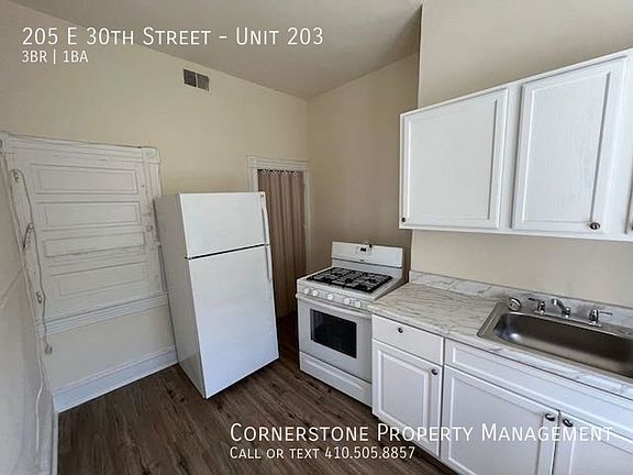 This 1000 square foot apartment home has 3 bedrooms and 1.0 bathrooms. This home is located at 205 E 30th St #203, Baltimore, MD 21218.