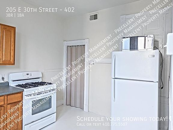 This is a 3 bedroom, 1.0 bathroom, apartment home. This home is located at 205 E 30th St #402, Baltimore, MD 21218.
