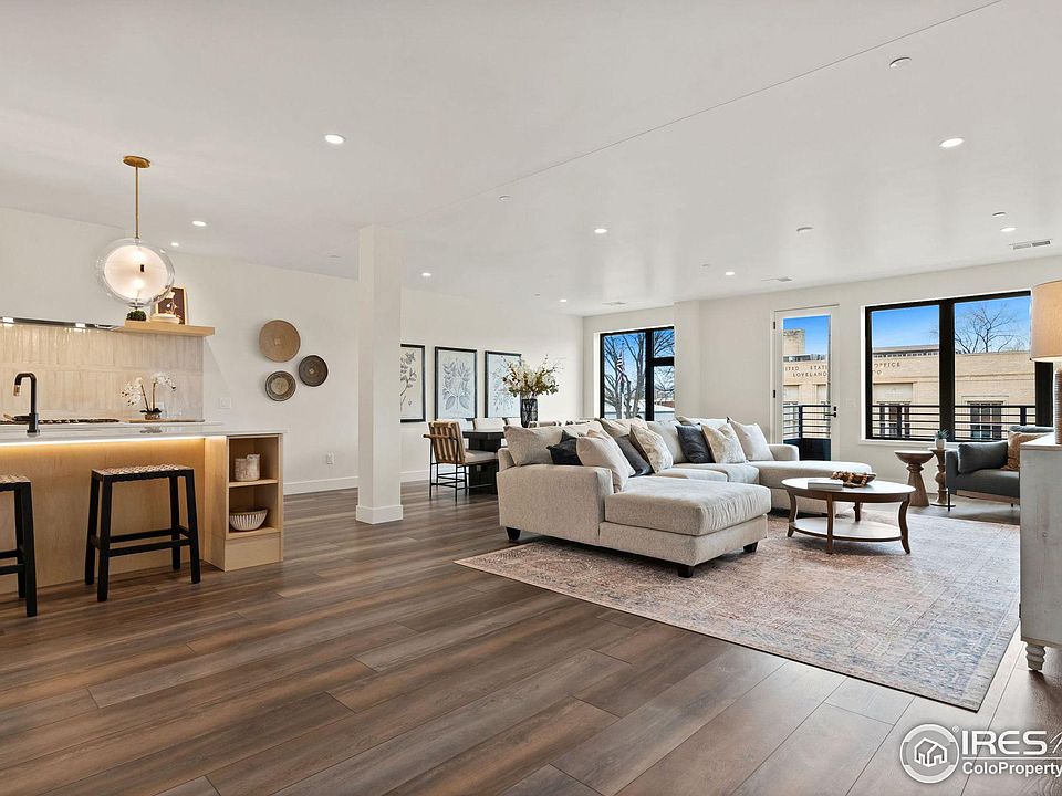 Welcome to The Collection-where world-class architecture, a prime downtown location, and historical significance converge in Loveland's premier luxury condominium project. This distinguished building stands on the historic site of Loveland's first public library, blending timeless charm with modern design.Situated in the heart of downtown, The Collection is central to local restaurants, festivals, boutique shops, grocery stores, music venues, and more.Each residence is fully custom-designed, providing homeowners a living space that is truly one-of-a-kind. West-facing Unit 201 offers views of Loveland's iconic Valentine's Day post office, with the Rocky Mountains as a breathtaking backdrop.The chef's kitchen is thoughtfully appointed with custom European cabinetry, an oversized island, quartz countertops, and premium stainless Thermador appliances, including a 5-burner gas cooktop. The open living and dining area features a modern gas fireplace with full tile surround, creating a warm and inviting space.The spacious primary suite includes a luxurious five-piece ensuite bath with custom finishes throughout. The guest bedroom offers its own full ensuite bath, ensuring privacy and comfort.For added convenience, Unit 201 includes a reserved parking space in the secure, enclosed ground-level garage, along with a private storage area-all located just feet from the elevator.Residents enjoy exclusive access to premium amenities, including a fourth-floor fitness center, indoor/outdoor entertainment areas with a kitchenette, TV lounge, conference space, and a rooftop deck featuring an outdoor fireplace, BBQ grills, and multiple lounge areas.The Collection offers a rare opportunity to own a fully custom luxury condominium in one of Loveland's most historically significant locations. Multiple floor plans and finishes are available-be sure to explore them all.