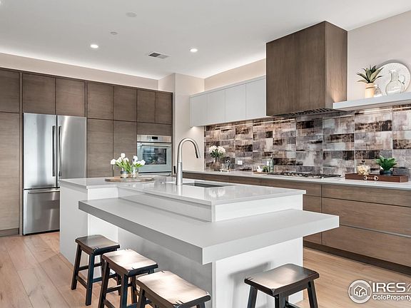 Welcome to The Collection-where world-class architecture, a prime downtown location, and historical significance converge in Loveland's premier luxury condominium project. This distinguished building stands on the site of Loveland's first public library, blending historic charm with modern elegance.Located in the heart of downtown, The Collection is central to local restaurants, festivals, boutique shops, grocery stores, music venues, and more.Each residence is fully custom-designed, offering homeowners a living space that is truly unique. West-facing Unit 401 features expansive views above Loveland's iconic Valentine's Day post office, with the Rocky Mountains rising beyond.The chef's kitchen is a showpiece, featuring custom European cabinetry, a two-tiered oversized island, quartz countertops, and premium stainless Thermador appliances, including a 5-burner gas cooktop. The open living room includes a modern gas fireplace and walkout access to a private balcony-perfect for relaxing or entertaining.The spacious primary suite includes a reading nook and a luxurious five-piece ensuite bath with a sleek wet room and custom finishes throughout. A guest bedroom also offers its own full ensuite bath, ensuring comfort and privacy.For added convenience, Unit 401 includes a secure, private two-car garage located just feet from the elevator.Residents enjoy exclusive access to premium amenities, including a fourth-floor fitness center, indoor/outdoor entertainment areas with a kitchenette, TV lounge, conference space, and a rooftop deck featuring an outdoor fireplace, BBQ grills, and multiple lounge areas.The Collection offers a rare opportunity to own a fully custom luxury condominium in one of Loveland's most historically significant locations. Multiple floor plans and finishes are available-be sure to explore them all.