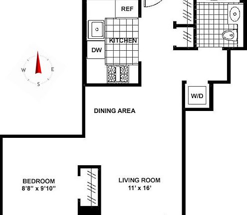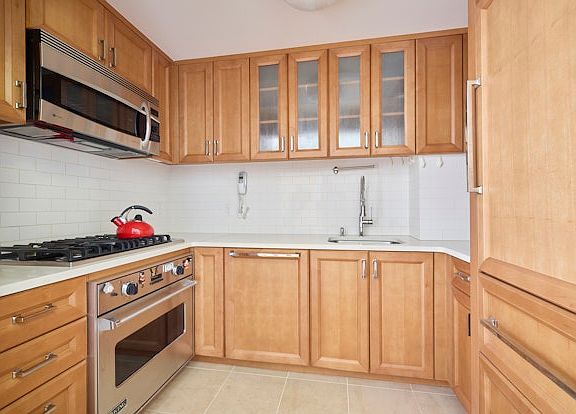 Upon entry you will be greeted by two large closets. A generously sized kitchen is equipped with a Subzero refrigerator, Viking gas range, a brand-new Miele dishwasher and built-in microwave. The living/dining room is bathed with natural light throughout all day, and so is the bedroom. Each room will be delivered with newly installed solar blinds. The elegant marble bathroom includes a soaking tub, a deep sink, and large medicine cabinets. Completing the residence are herringbone hardwood floors, a central heat and air-condition system and laundry closet with Miele washer and dryer.