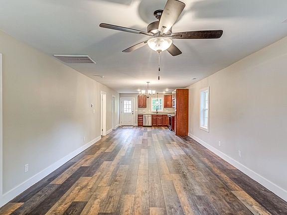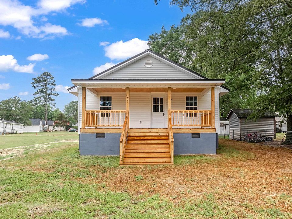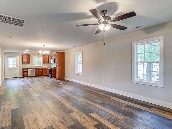 NEW PRICE! Must See Transformation Ready for Move-in!! NEW Wiring, NEW Plumbing & Fixtures. NEW HVAC. NEW Metal Roof. NEW windows. NEW Lighting. NEW Granite Counters in Kitchen, NEW Stove, Microwave & Dishwasher. NEW Luxury Vinyl throughout main living space. NEW Carpet in Bedrooms. Freshly Painted. Primary ensuite offers tiled shower, double vanity. Ceiling Fans in both bedrooms and family room. The 22 x 8 Covered front porch is just waiting for your rocking chairs! Original structure built in 1930 but was gutted for Total Renovation when moved to site in November 2022. NO HOA fees. Washer and Dryer included to be installed.