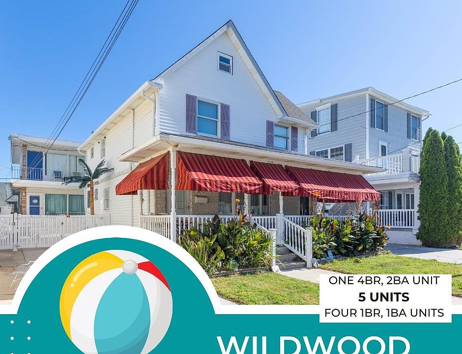 FOUR BEDROOM HOME + 4 RENTAL UNTIS 2 BLOCKS TO BEACH & BOARDWALK! This well maintained multi-family property is situated in a terrific location, and easily has the potential to generate a positive cash flow. Situated close to the beach, boardwalk, restaurants, ice cream parlors, mini-golf and more, and only few blocks away from Wildwood Crest! The front home consists of 4 bedrooms and 2 baths with large sitting area, living room, dining area and and eat in kitchen with gas stove and a very welcoming covered front porch, where you can relax and watch the island buzz with summer fun. There is also a full size washer and dryer and plenty of storage space throughout. This home has gas forced air heat and central air (2 zones) and it is perfect for year round living. The rear building consists of four rental apartments - each unit has a porch area, 1 bedroom and 1 bath, with full size kitchen with a refrigerator and a stove top. All four rear apartments have mini split wall A/C & heat units. There is a great yard area with picnic table, BBQ grill, storage shed and outside shower, and THREE CAR PARKING on the concrete driveway completes this amazing package. The property enjoys a solid rental history - each rear unit generates $6495 per season, but that is a very conservative rental amount and it's based on the fact that some tenants come back every year and leave the property in good condition. There is potential to push the income on the back units and rent the front house for even more cash flow - or use it for your summer or year round home. This is EASY to show!