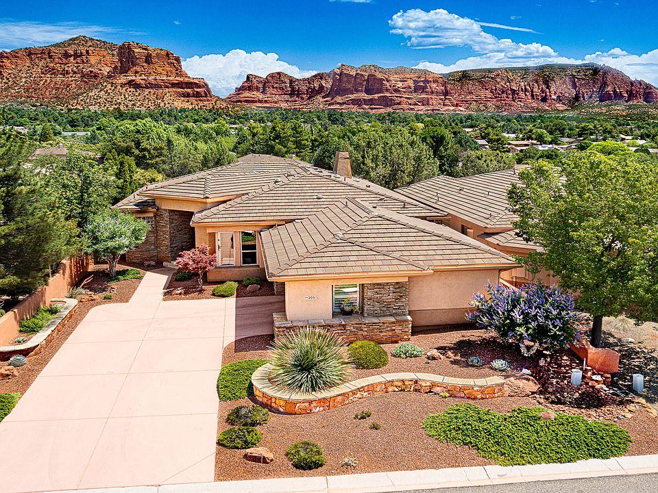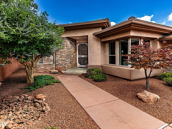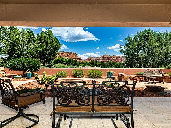 Views that will not disappoint! This picture perfect home in 1,951 square feet is nestled in the Sedona Golf Resort and backs to the 13th hole with unobstructed red rock views. The backyard is an oasis with bubbling stone water feature, built in BBQ, & manicured grounds - all surrounding you while absorbing the stunning golf course and mesmerizing red rocks. The home was remodeled prior to 2019 throughout, from the kitchen to the bathrooms, and the current owners have also added a newer roof, Bosch heat pump in 2022, updated wood/electric fireplace in the great room, extended the travertine flooring & added 240V electric service for an electric vehicle. Nothing left to do but enjoy the Sedona lifestyle. Restaurants, galleries, golf courses, shopping are all nearby.
