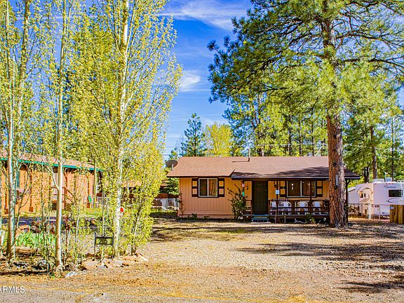 Wow look at this lot! With this lot you could double the size of the house or fit 2 Rv plus more parking ...No HOA, nice paved roads close to the freeway and 10 minutes from Flagstaff while still being in the woods. Plus the roof is only 4 years old, and the home was painted last season. The seller did their due diligence and had a new, updated electric panel and system just installed. There is also a Fenced in backyard with a screened in back porch AND a front porch to enjoy the nice summer weather. This quaint cabin is open concept living but still leaves you the potential to make it your own. This sweet home won't last long, come see your new escape in the woods. Plus with the right offer the sellers are offering $2000 flooring credit and 1 year home warranty.
