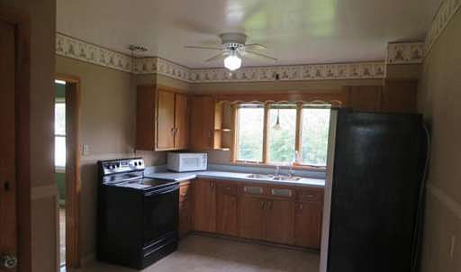 very nice three bedroom, 1and 1/2 story home on a corner lot with a 1 car garage range, siding and most of the windows are 5 years old , and home has a new 95 % furnace installed sep 2014 08/02/16