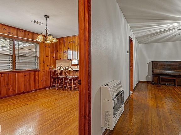 Home. It's a feeling you get when you step into 205 E. College. The heart of this home is the kitchen, which has been refreshed with new flooring and new stainless appliances, including a new side by side fridge. Ample cabinets offer plenty of storage. There is a separate dining room as well, perfect for upcoming family meals. The split bedroom floor plan provides a sense of privacy for family or guests. The living room and 2 of the bedrooms have gorgeous, freshly polished, original hardwood floors. As if the home isn't warm enough already, there is a natural gas wall heater in the living room perfect during winter storms. This lovingly cared for property has been thoughtfully updated with a new roof in 2024, fresh paint inside and out, and a new water heater in 2021. Not only is it move in ready, but also worry free for years to come. Outside is a large 2 car carport with an additional storage area that is being used as a workshop currently. This is in addition to the detached garage/workshop with roll up door and a separate walk up door. The backyard is large with full size shade trees. This is more than a place to live, it's a place to grow, to gather, and make to memories.